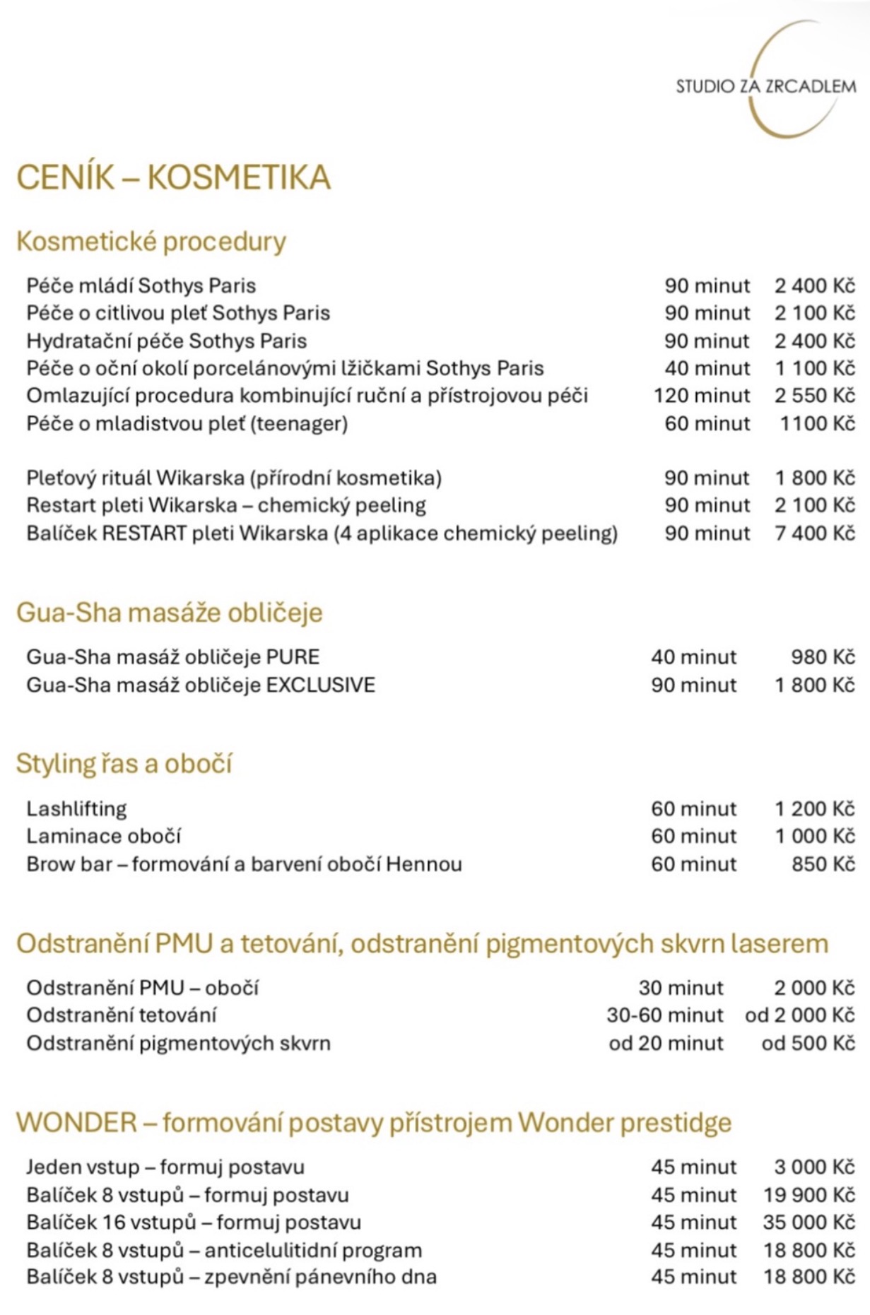 Ceník Kosmetika Studio za Zrcadlem 2026